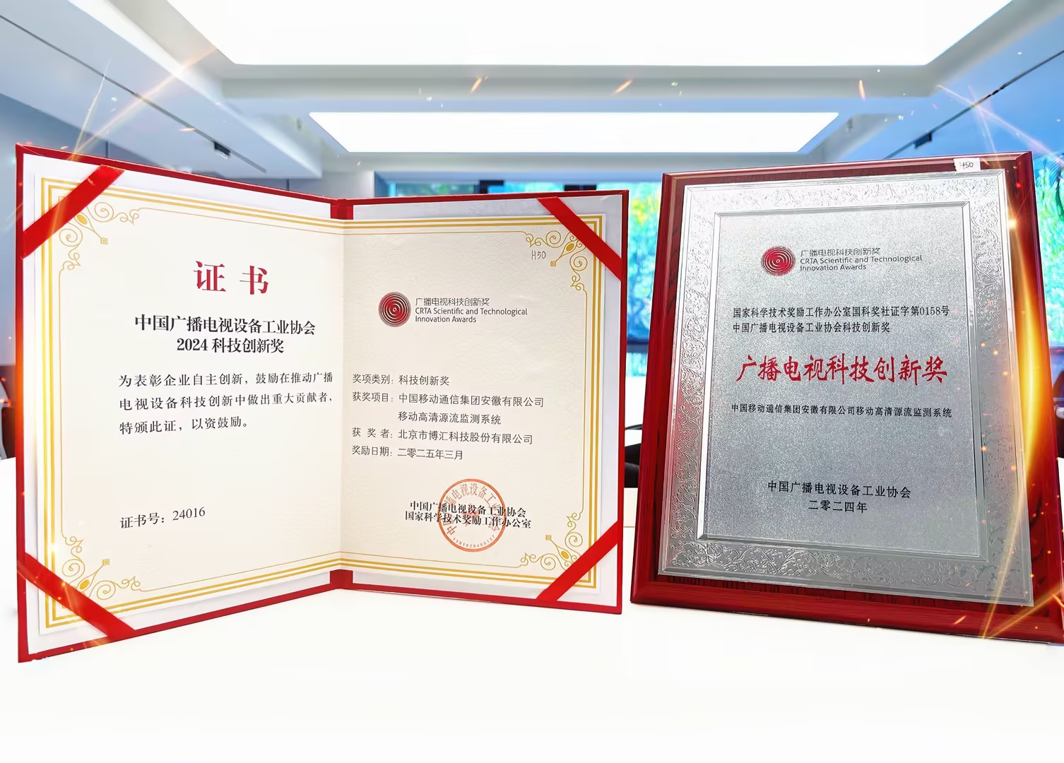 經(jīng)國家科學技術獎勵工作辦公室批準設立,由中國廣播電視設備工業(yè)協(xié)會承辦的2024科技創(chuàng)新獎(國科獎社證字第0158號)重磅揭曉,博匯科技為中國移動通信集團安徽有限公司定制開發(fā)的移動高清源流監(jiān)測系統(tǒng)項目榮膺「廣播電視科技創(chuàng)新獎」。